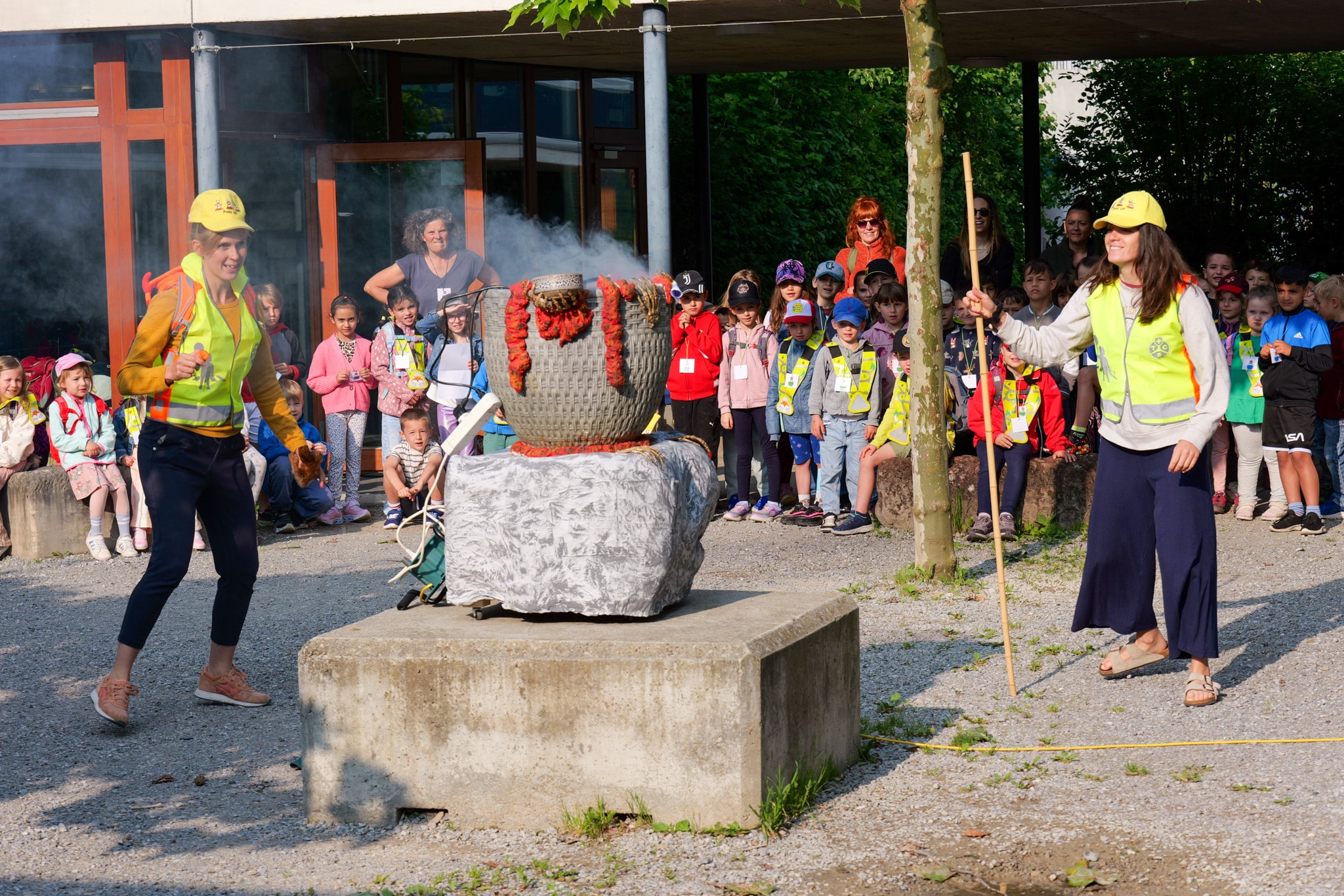 An den folgenden Tagen wurde die Schule selbst zum Ort voller Magie: In gemischten Gruppen konnten die Kinder an unterschiedlichsten Workshops teilnehmen. Sie brauten geheimnisvolle Zaubertränke, bastelten ein Zauberportemonnaie, meisterten einen Zauberparcours oder eine spannende Schnitzeljagd im Wald, bauten ein kleines Zauberschloss – und erlebten noch viele weitere fantastische Abenteuer.