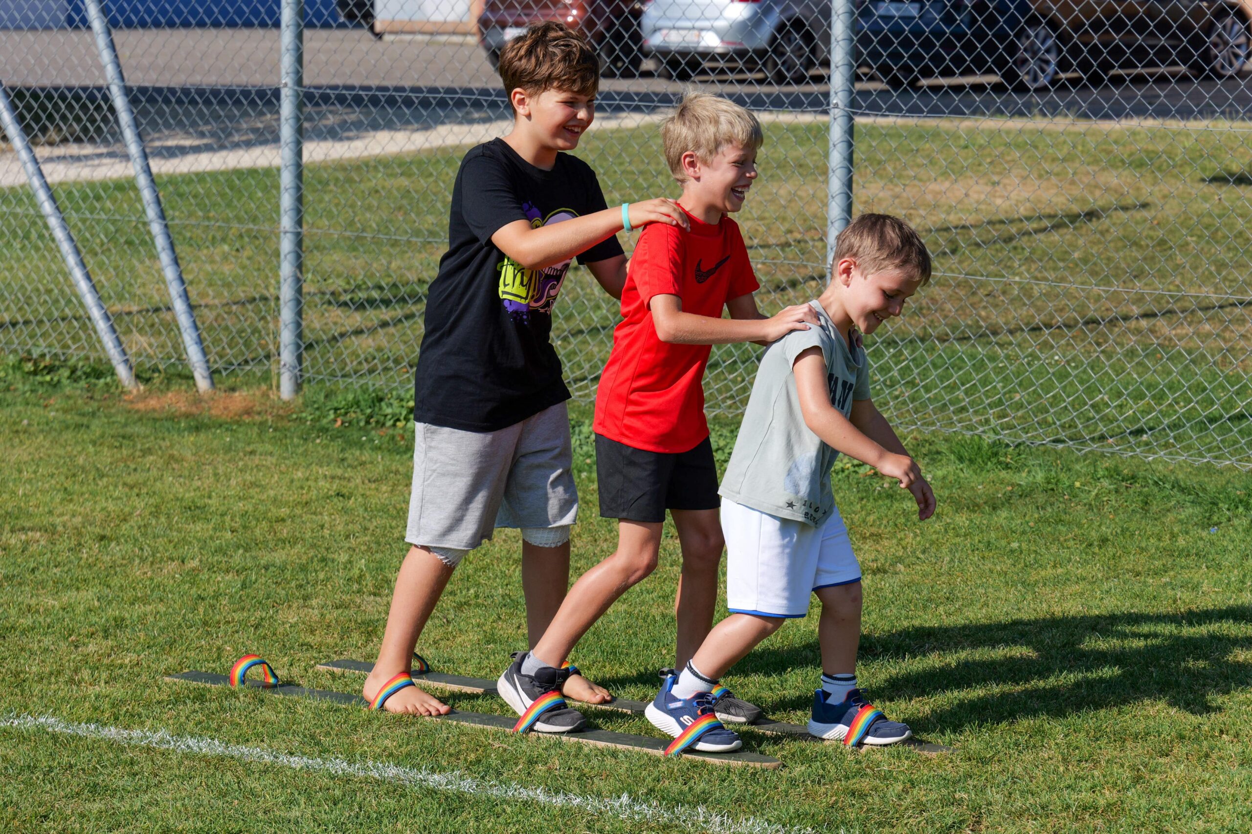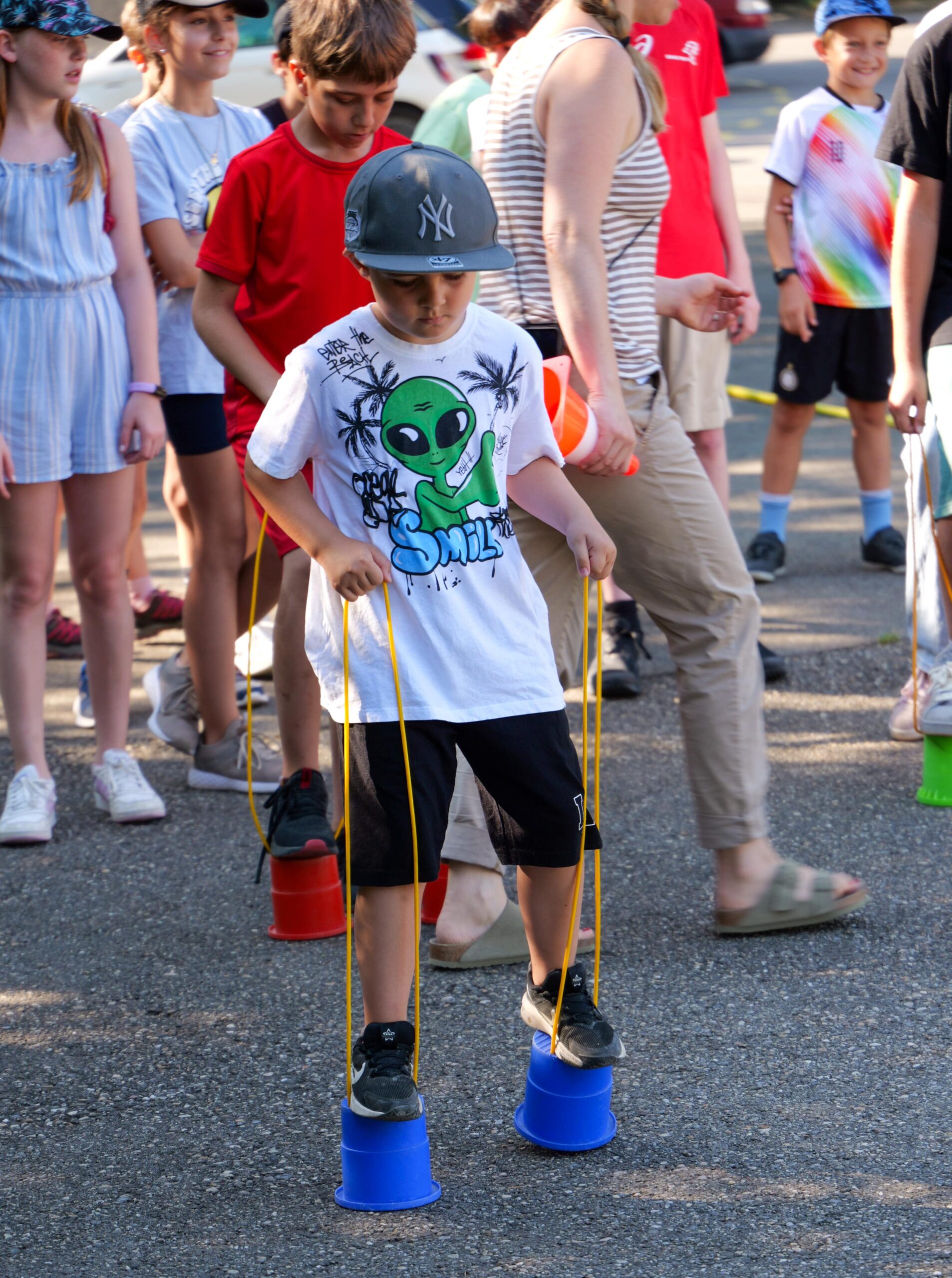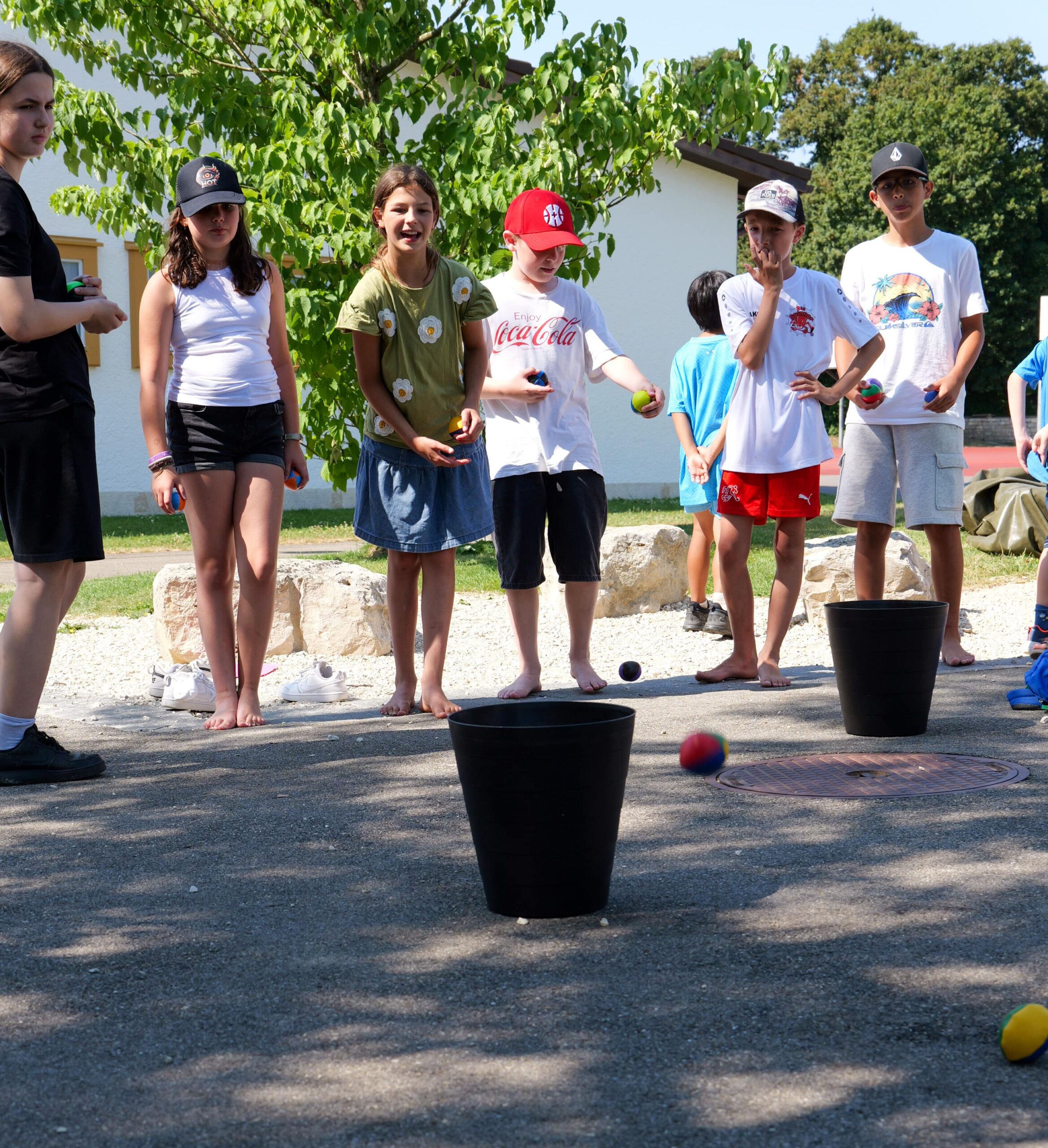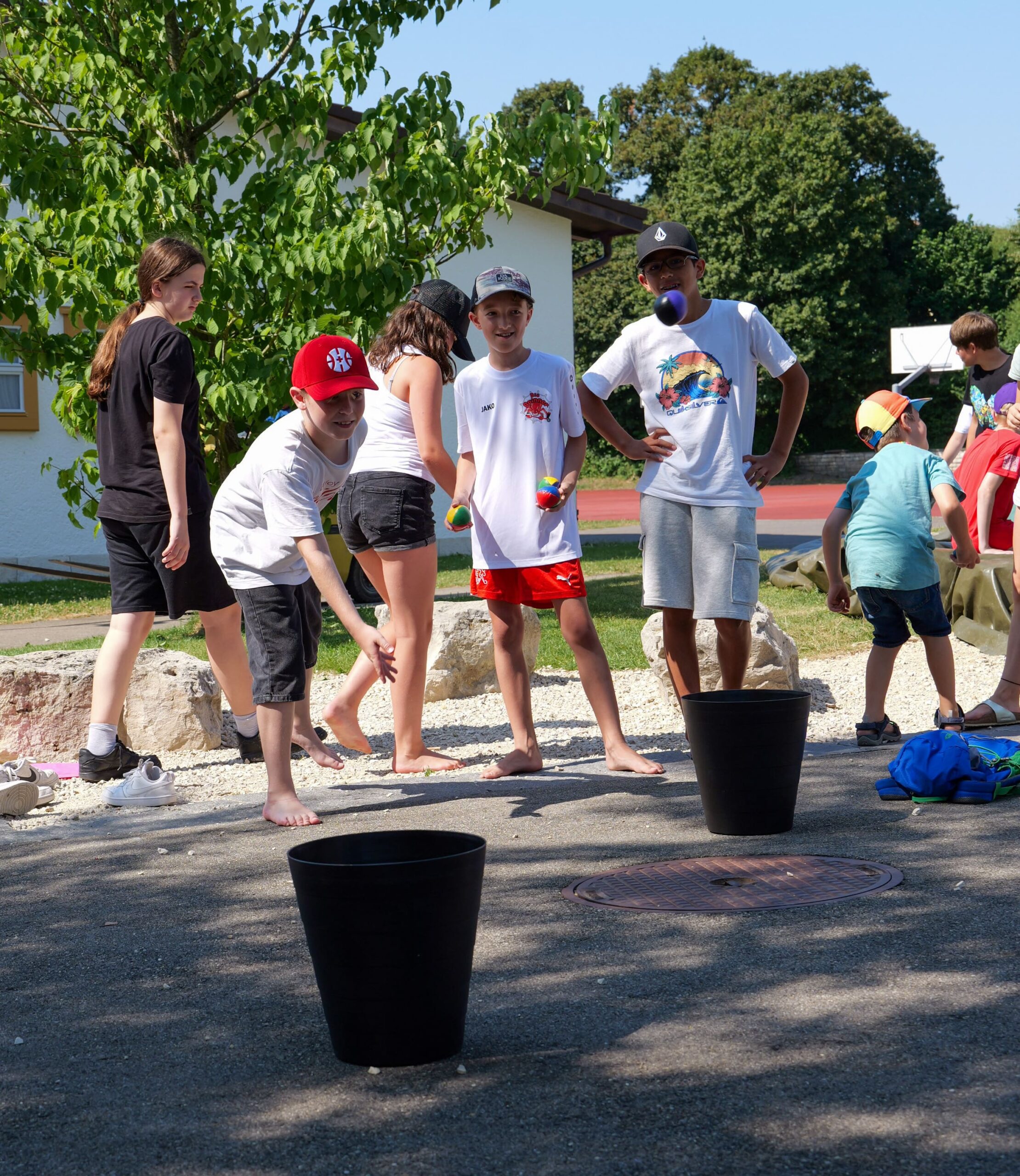 Den Abschluss des Schuljahres feierten die Schülerinnen und Schüler aller Klassen gemeinsam mit einem Postenlauf und viel Spiel und Spass.