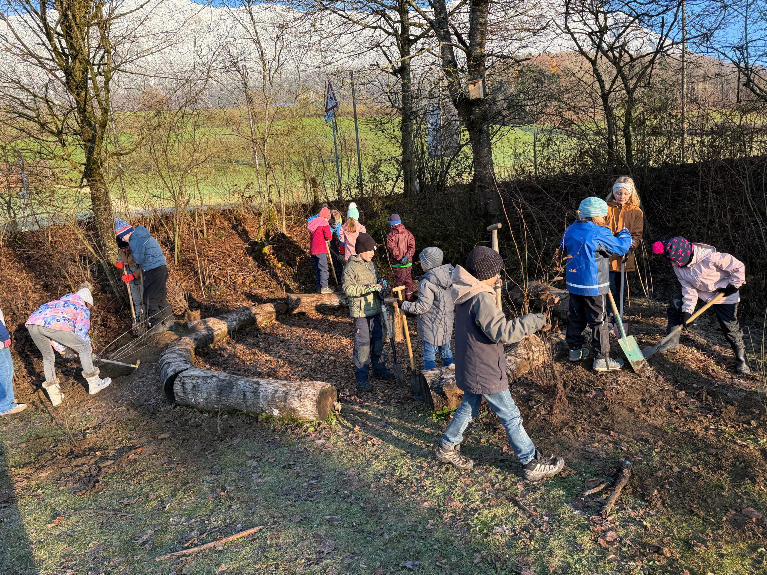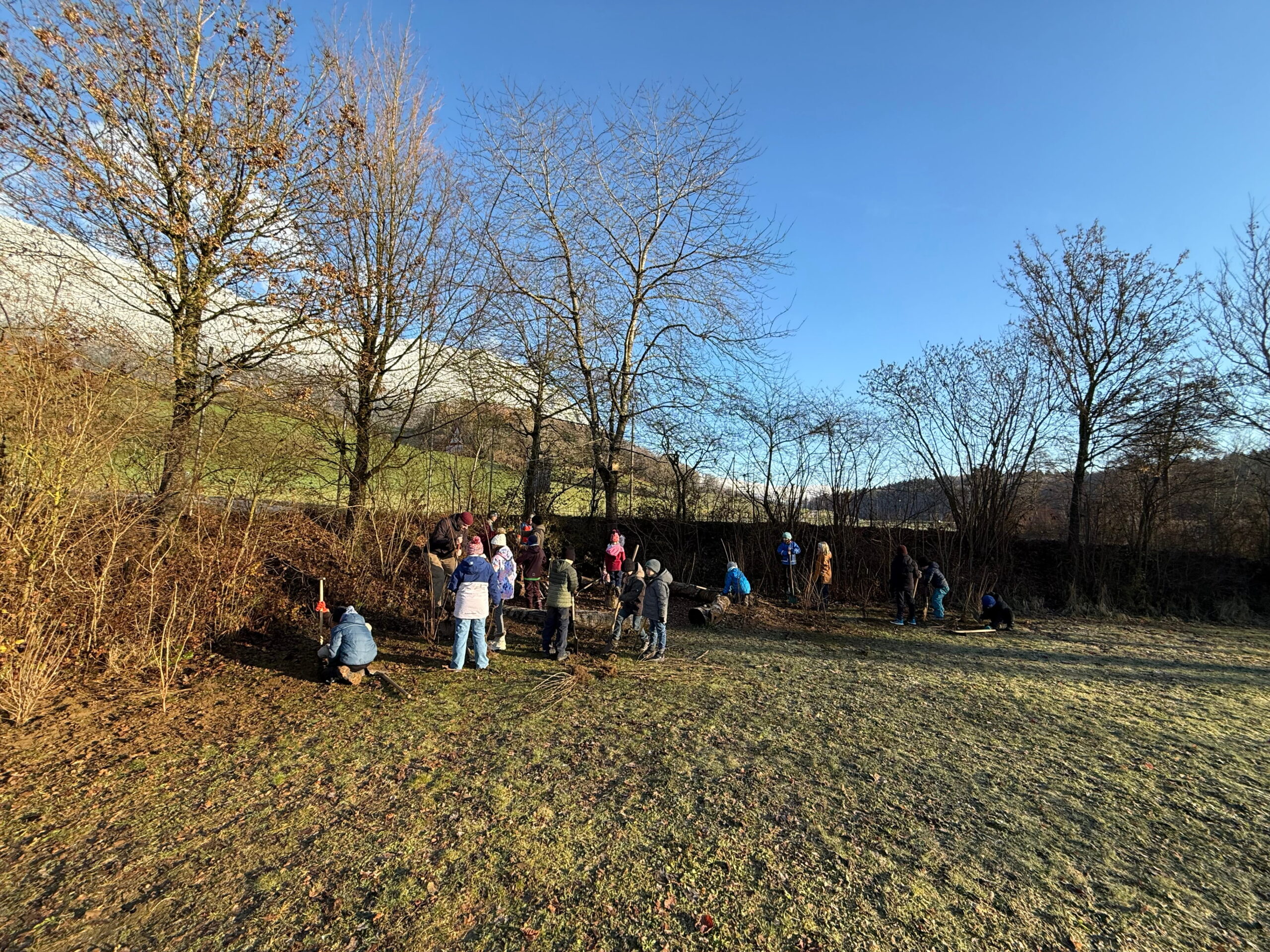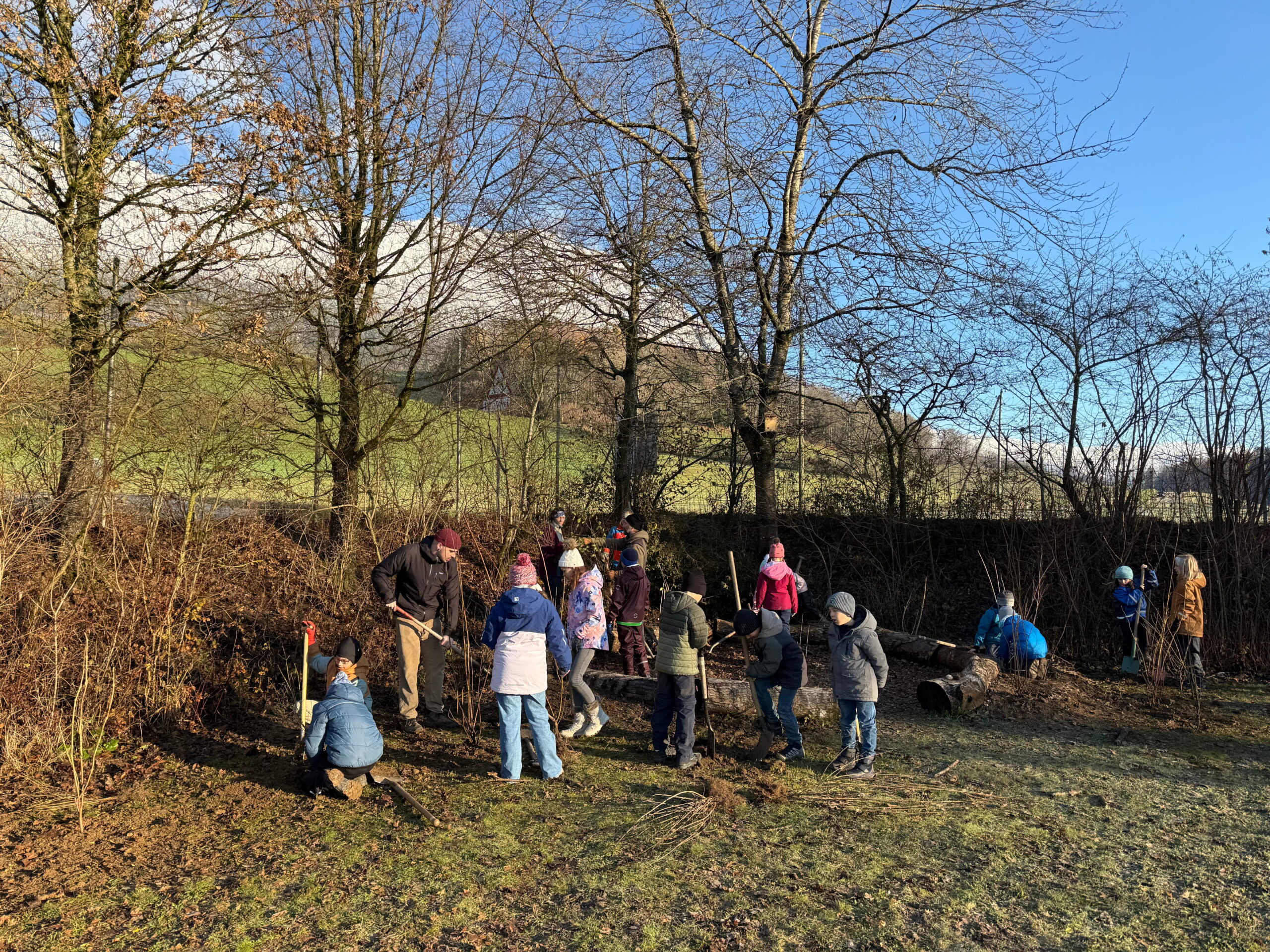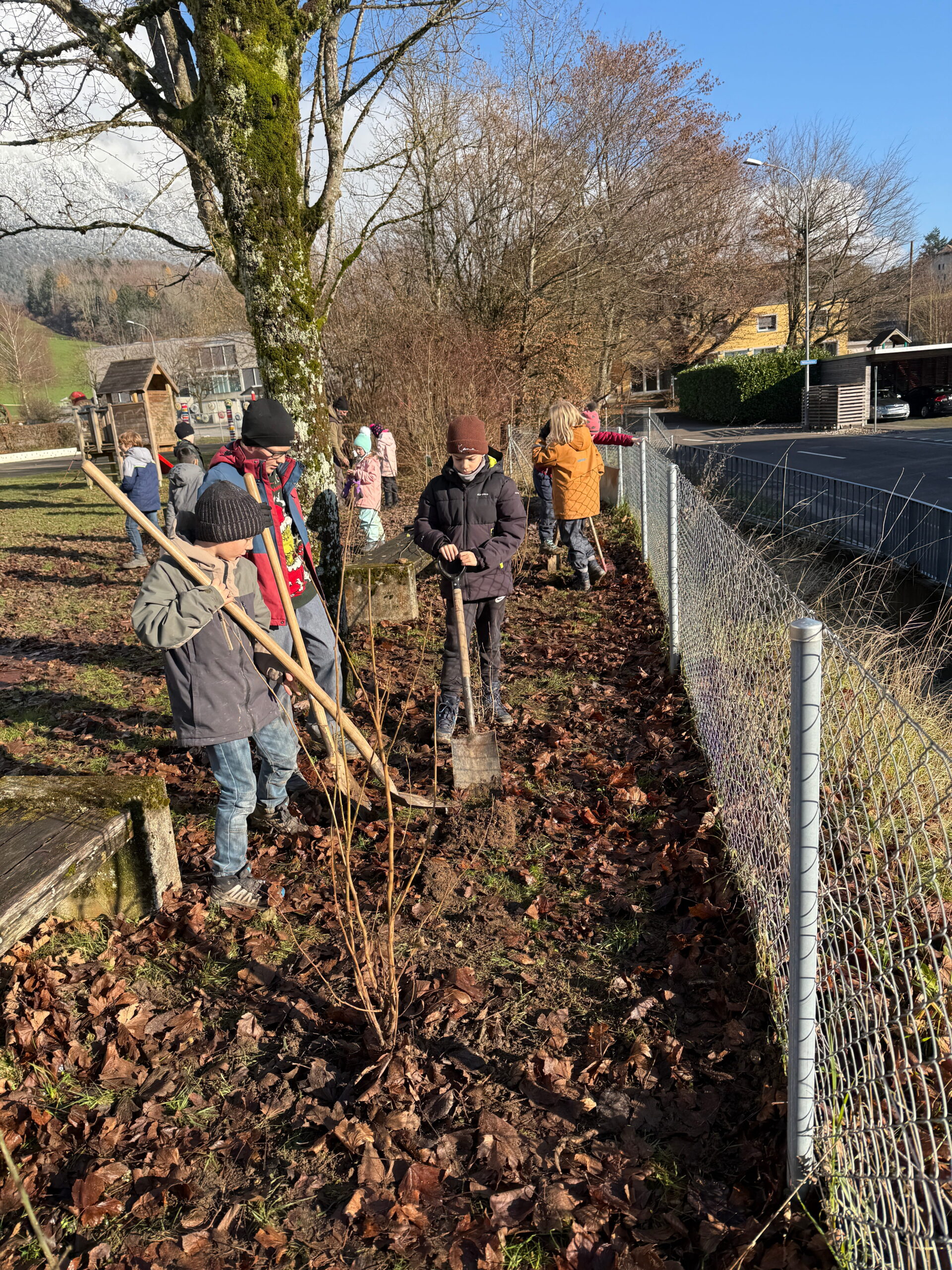 Im Nachtrag zur Projektwoche wurden am Donnerstag, 27.11.2025, verschiedene Hecken und Sträucher rund um das Schulhaus eingepflanzt.