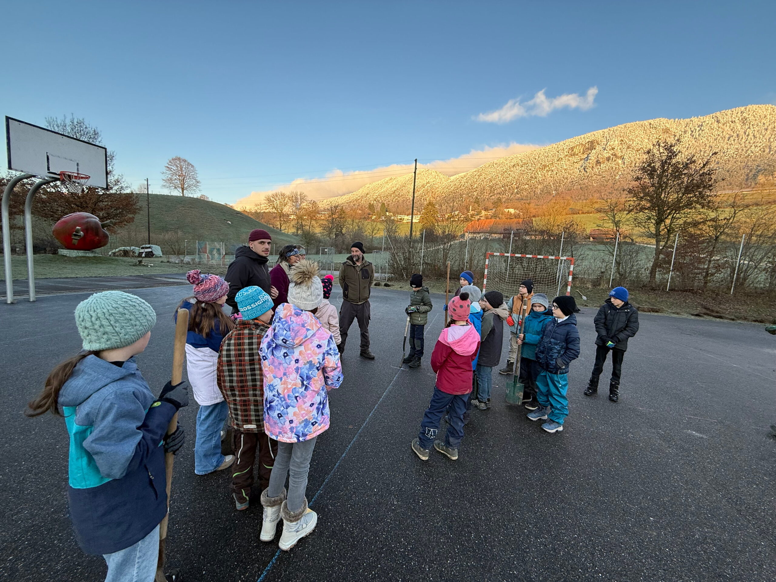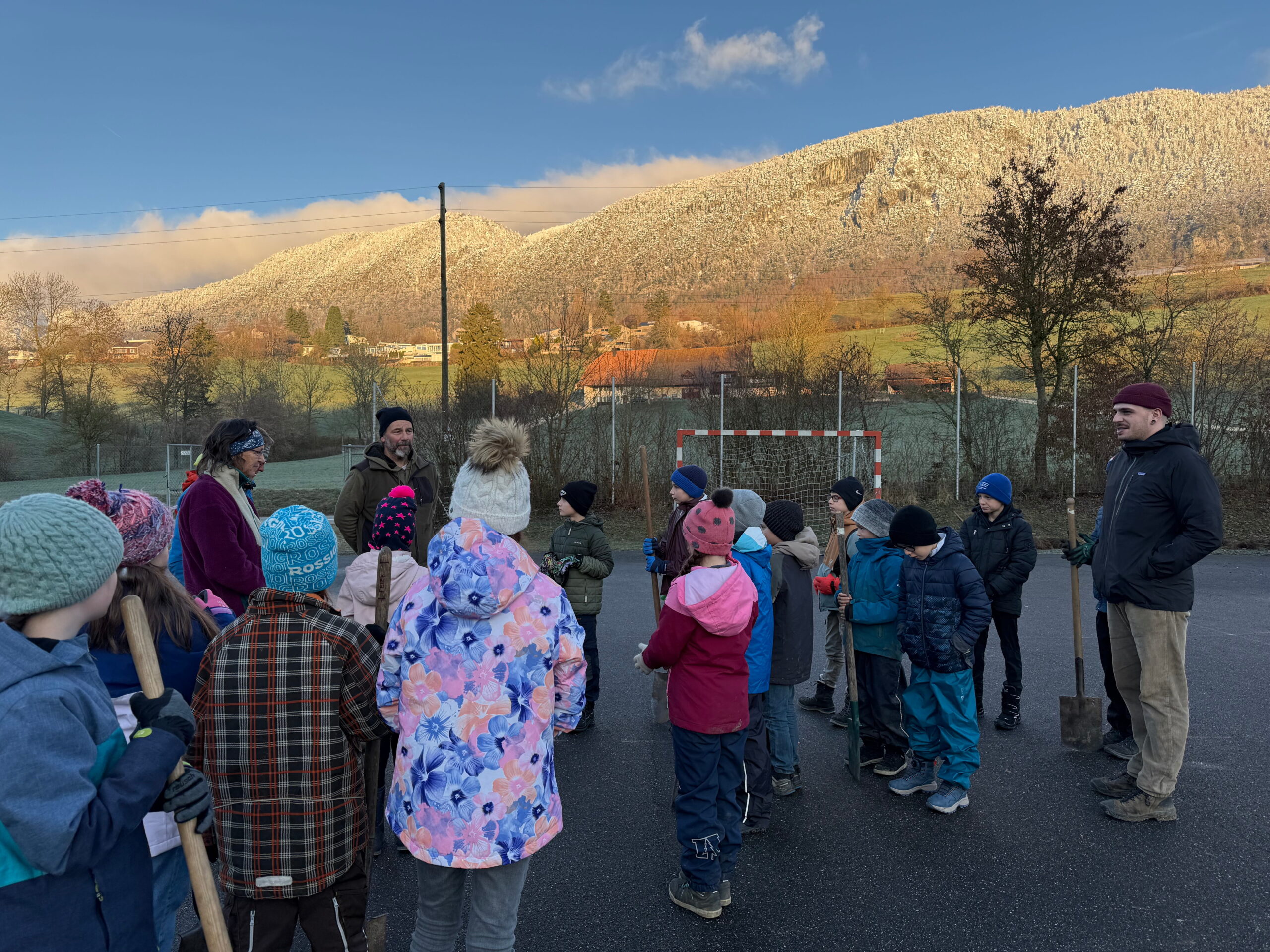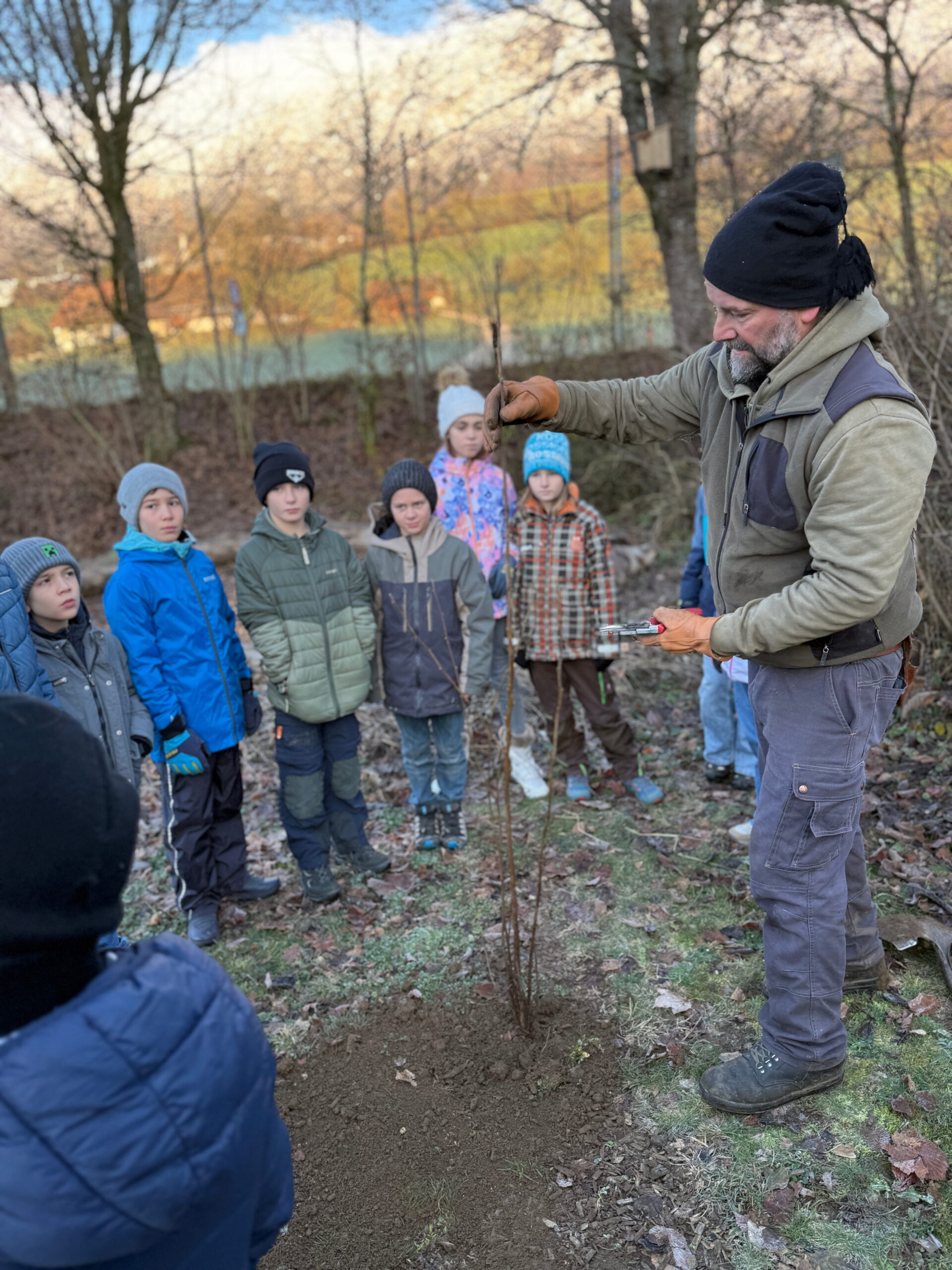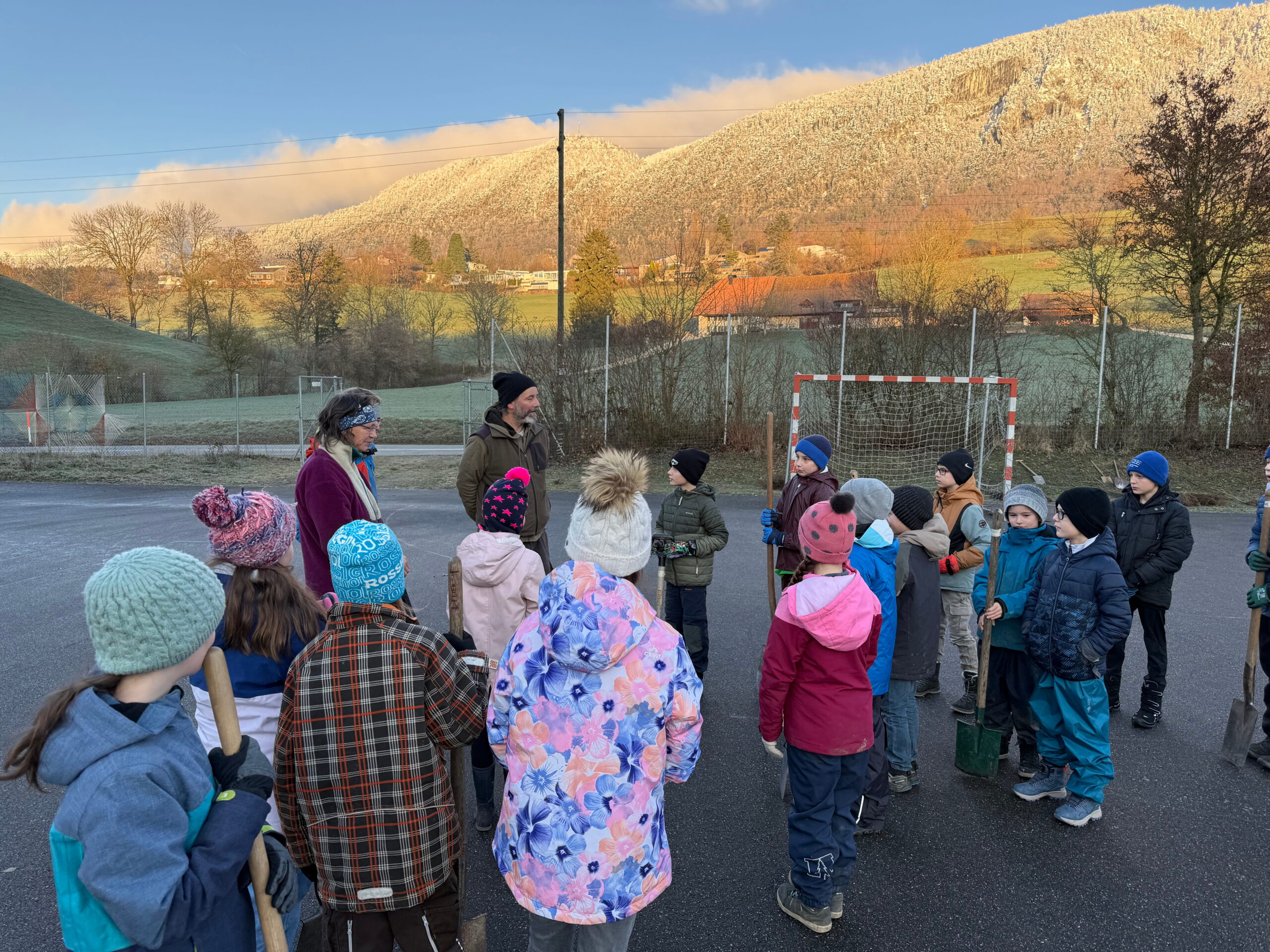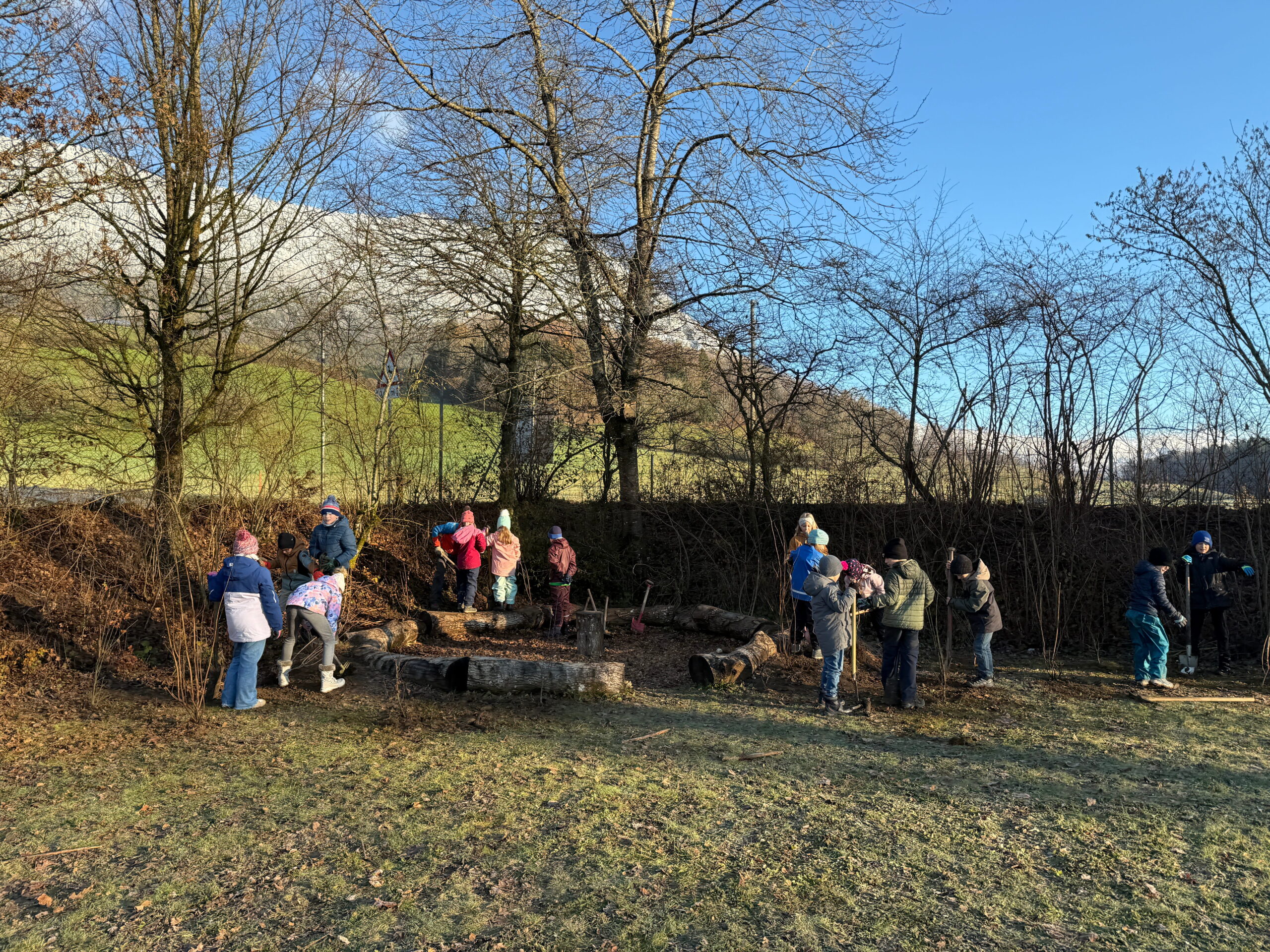 Im Nachtrag zur Projektwoche wurden am Donnerstag, 27.11.2025, verschiedene Hecken und Sträucher rund um das Schulhaus eingepflanzt.