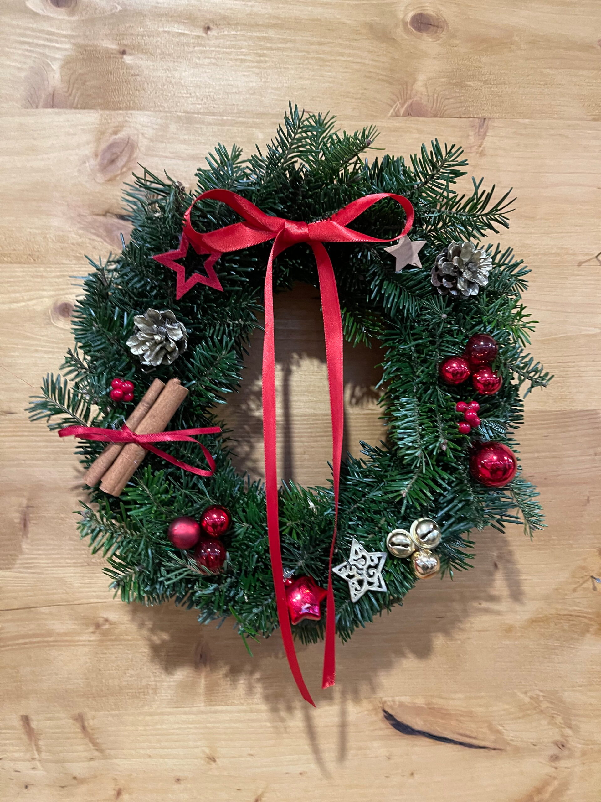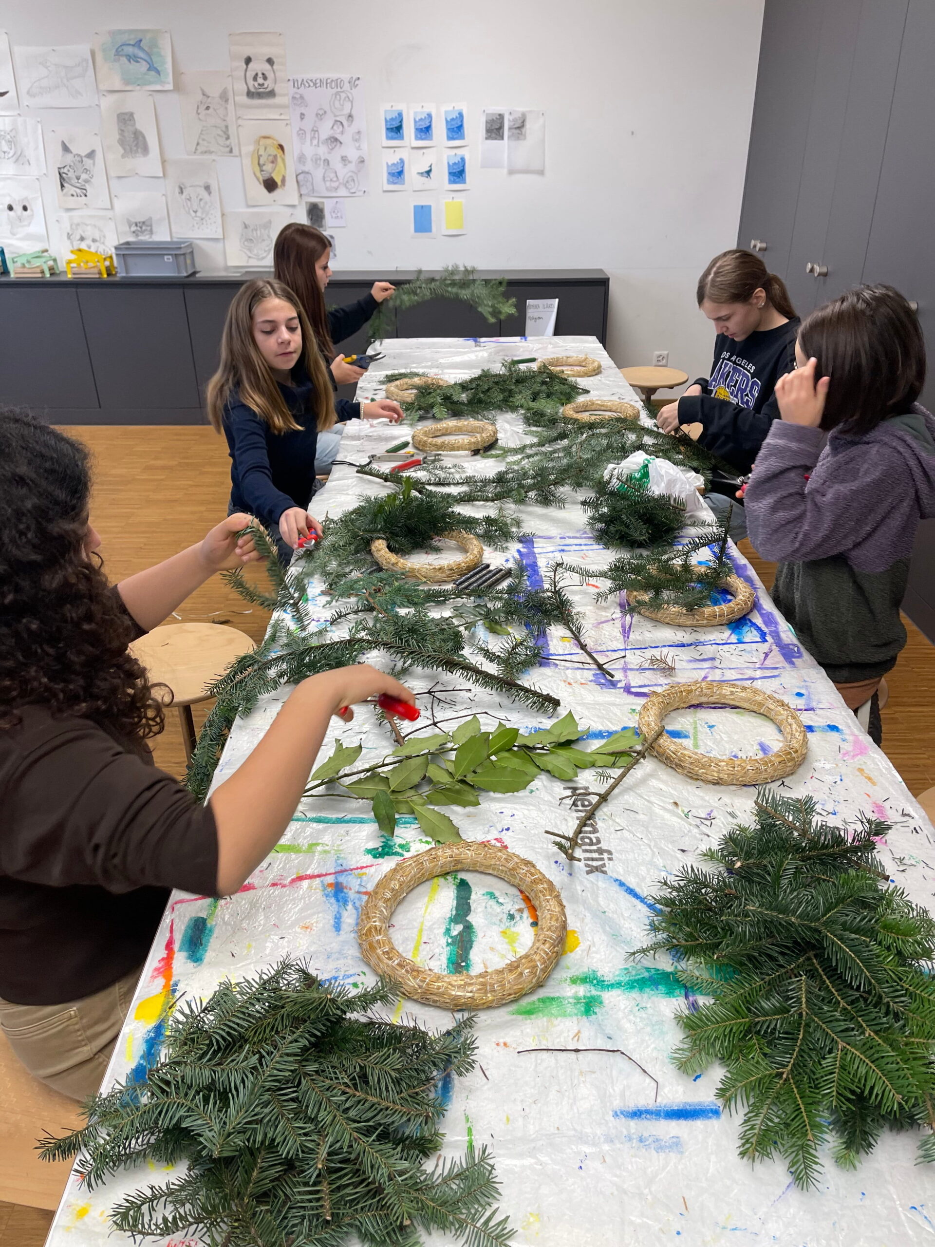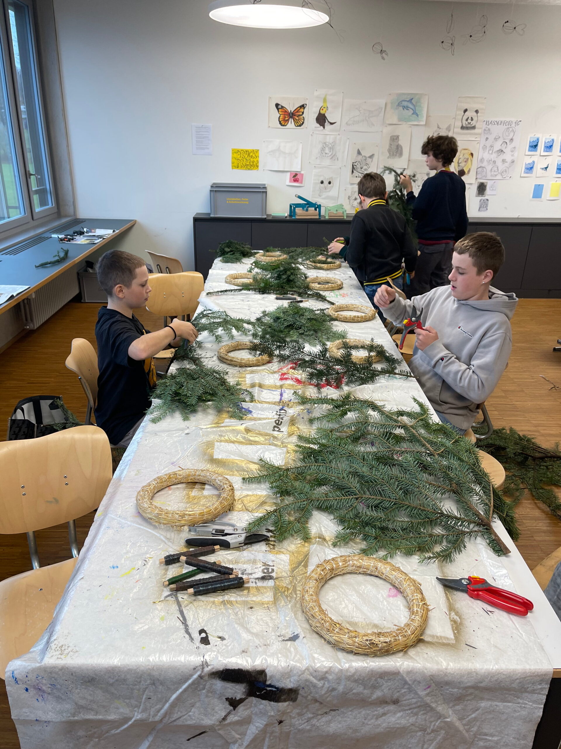 Im Dezember 2025 gestalteten alle 7. Klassen der SEK I mit viel Engagement und Kreativität wunderschöne Winterkränze. Mit frischem Grün vom Forstbetrieb Leberberg wurden zunächst Strohringe sorgfältig umwickelt. Anschliessend verzierten die Schülerinnen und Schüler ihre Kränze mit Kugeln, Tannzapfen und weiteren Dekorationselementen.